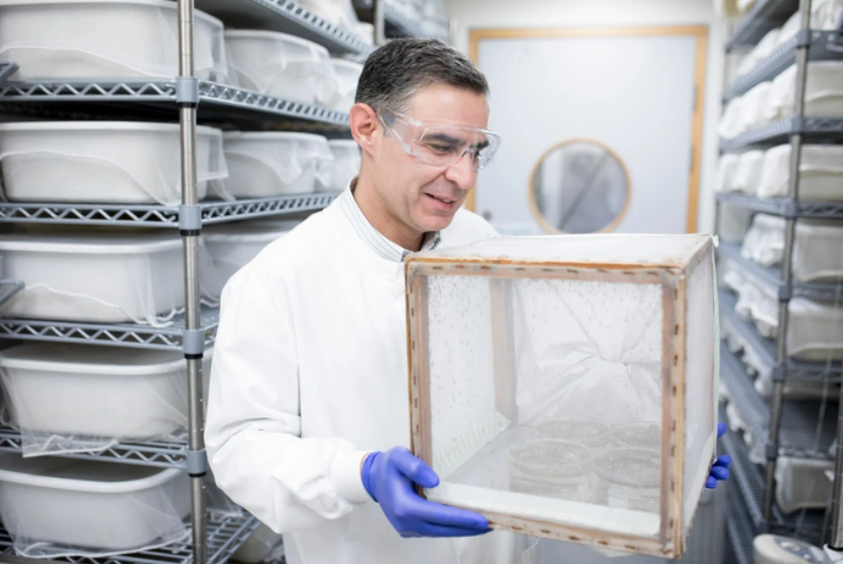 Professor George Christophides from the Department of Life Sciences at Imperial College London holding a cage of mosquitoes - (Image Credit: Imperial College London via EurekAlert)